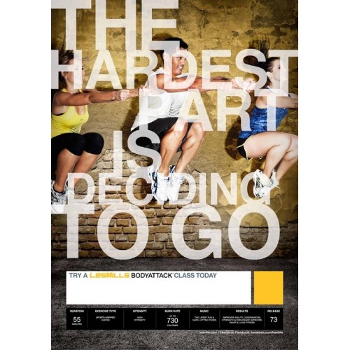 BODYATTACK™ is the sports-inspired cardio workout for building strength and stamina. This high-energy interval training class combines athletic aerobic movements with strength and stabilization exercises. Dynamic instructors and powerful music motivate everyone towards their fitness goals - from the weekend athlete to the hard-core competitor! Like all the LES MILLS™ programs, a new BODYATTACK™ class is released every three months with new music and choreography.